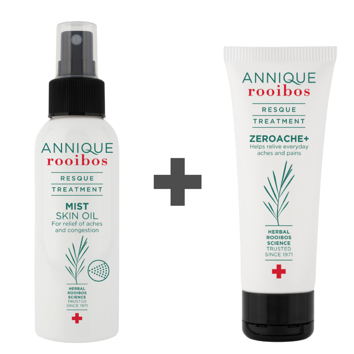Annique Resque ZeroAche+ has been formulated with natural ingredients and Rooibos extract to help provide relief from muscle aches, stiffness, sprains, bruises, strains and rheumatism. It also helps soothe headaches and migraine symptoms, insomnia and other stress related conditions.